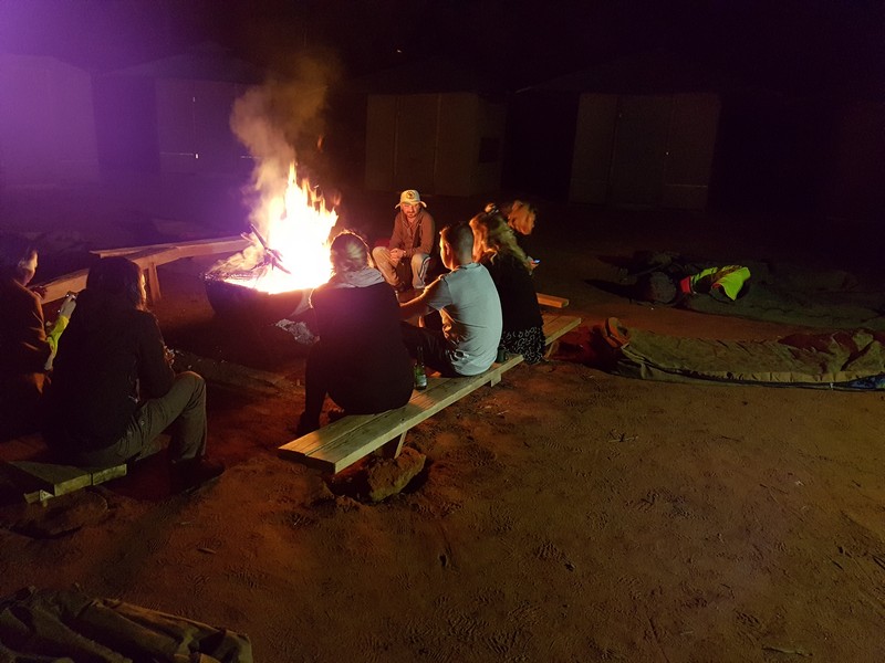 Le soir, après le feu de camp, nous dormons à même le sol dans des swag (matelas-duvet de camping en toile de jute) au coin du feu. Attention, les journées ont beau être chaudes dans le désert, les nuits y sont froides ! Les ciels des déserts sont les plus beaux et les plus purs (avec une voie lactée de toute beauté) qu’il nous a été donné de voir !