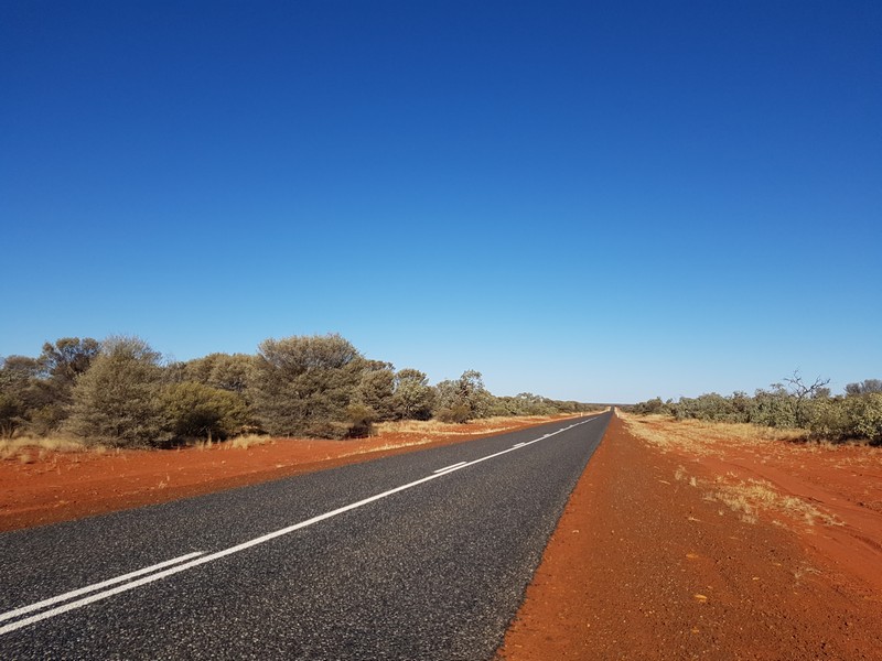 Sur les routes vers Uluru, les paysages deviennent de plus en plus rouges.