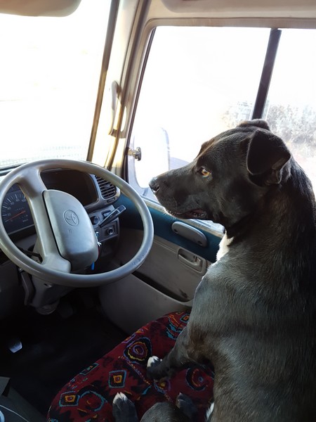 Voici "ba djidji" (seuls ceux qui comprennent le chinois pourront comprendre), chien errant recueilli par Izaac, notre guide, qui a fait le chemin retour jusqu'à Alice avec nous.