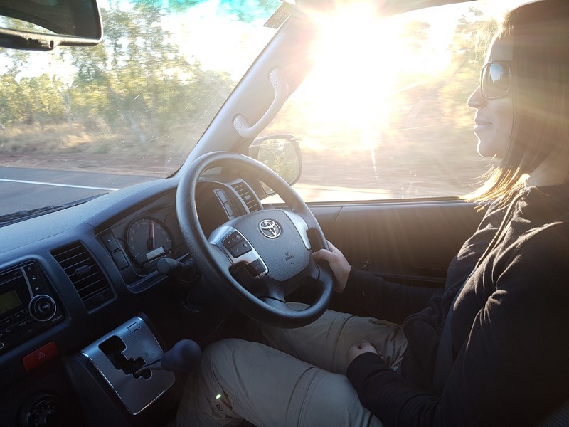 Pour relier l’aéroport à la ville, le pouce en l’air nous a permis d’éviter de payer une navette et de rencontrer deux immigrés indiens qui nous ont alertés sur la difficulté que nous aurions à trouver une voiture à Alice…