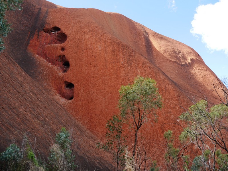 Nous avons pu faire une partie du tour du rocher (le tour complet faisant 10km!) ce qui est très intéressant pour découvrir ses aspérités, ses variations de couleurs, sa végétation et l’Histoire qui entoure ce rocher si mystérieux.