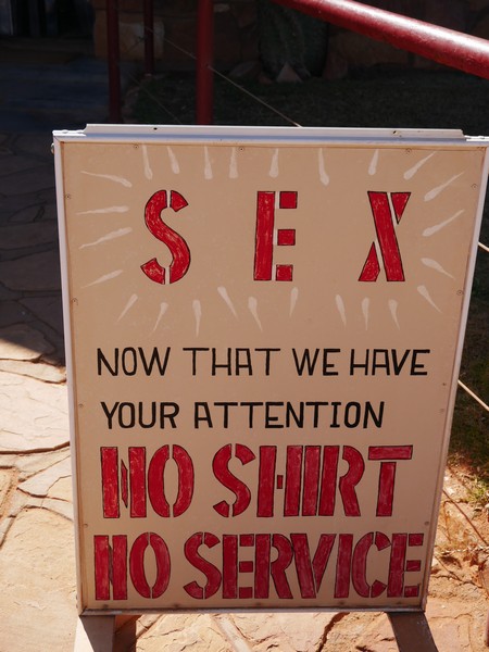 Dans les roadhouses (aires d'autoroutes au milieu de rien au milieu du désert), il y a souvent des petites choses rigolotes, on partage la meilleure!
