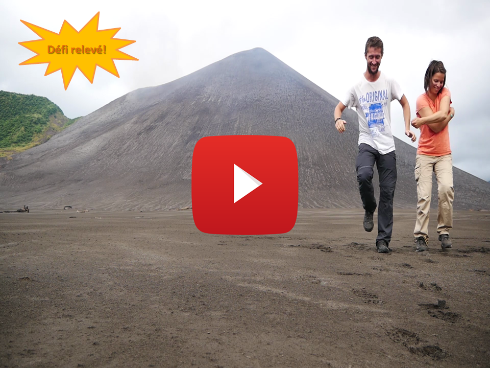 Images impressionnantes… Mais pourquoi le défi du grand saut n’a pas été effectué du haut du volcan? Dommage…